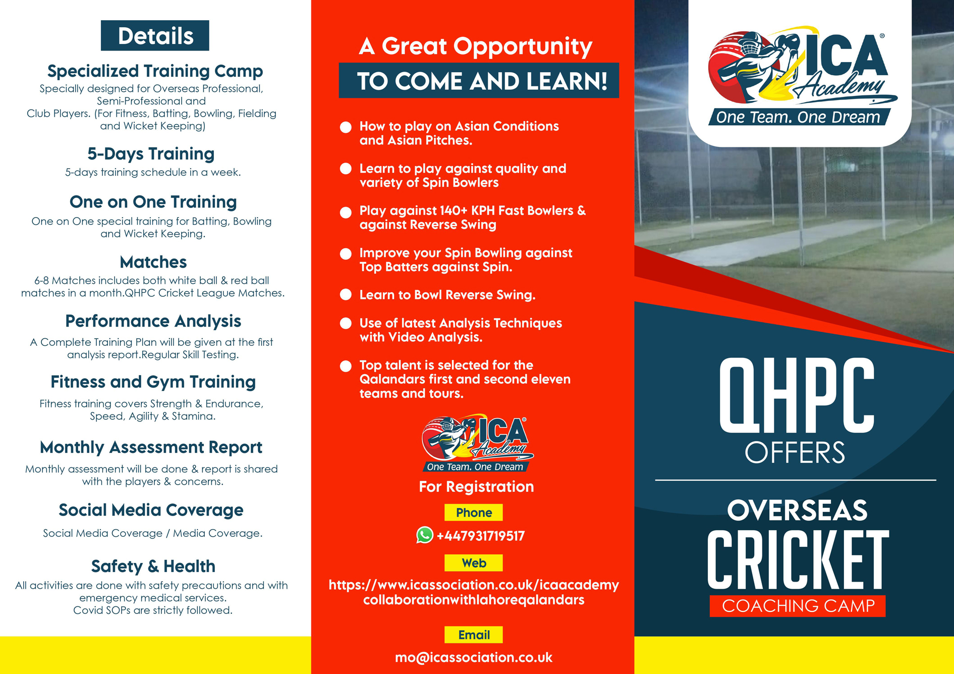 ICA Cricket Academy has started working with Lahore Qalandar High Performance Center (QHPC) to bring the best talent from different countries of the World in Pakistan and get a chance to train at the Qalandars High-Performance Centre.